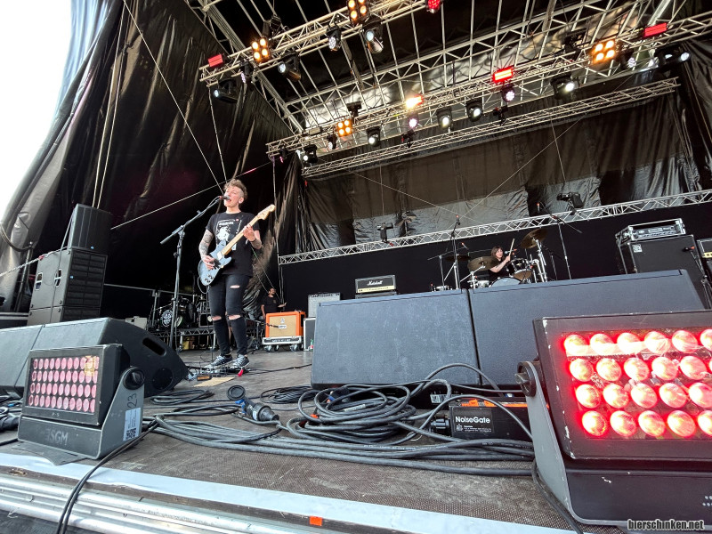 MOBINA GALORE aus Kanada haben es pünktlich geschafft und so geben wir die ersten Tanzeinlagen zum Besten. Wie gewohnt einfach gut! Auf großer Bühne & Open Air geht der Sound natürlich etwas unter, funktioniert in kleinen Buden viel besser, ist aber trotzdem sehr gut und wir liegen uns hinterher glücklich in den Armen. Anschließend verpassen wir wieder zwei Bands und feiern stattdessen Parkplatzparty.