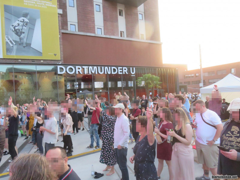 Der Platz ist gut gefüllt, die Leute haben Spaß, es wird mitgesungen, getanzt, geschnippst und einiges mehr, alles toll! Freut mich dass Konzerte weiterhin (oder wieder) gut besucht sind und sich weder am U noch im FZW bemerkbar macht, dass hier zwei gute Konzerte in direkter Nachbarschaft die Leute abspenstig machen könnten. Aber ich glaube ich war nicht der einzige, der sich heute beides gegeben hat.