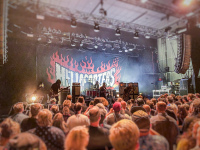Das Publikum hat heute auch richtig Lust auf die Band und mit dem Wetter haben wir alle großes Glück, weil es weder vor noch in der Halle so drückend heiß wird, wie befürchtet.