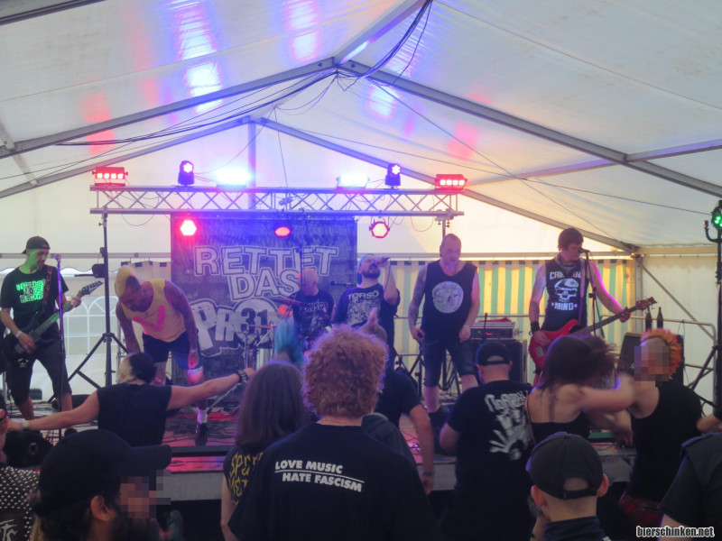 Fö: Als Hit ist mir in Erinnerung geblieben "Ih ih identitäre Affen". Toll! Sonst auch schön pöbelig, politisch und wütend. kiki: Super Band. Der Sänger mit der schönsten Irofarbe des Wochenendes war auch noch das komplette Festival am Start.