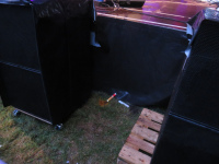 Was nicht so gut funktioniert, scheint das Schlagzeug zu sein. Anscheinend wird hier ein sogenanntes Wanderschlagzeug genutzt. Diverse Versuche später, die Bassdrum mit Händen, Füßen und übriggebliebenen Boxen an ihrer Position zu halten, scheint es aber einigermaßen zu halten.