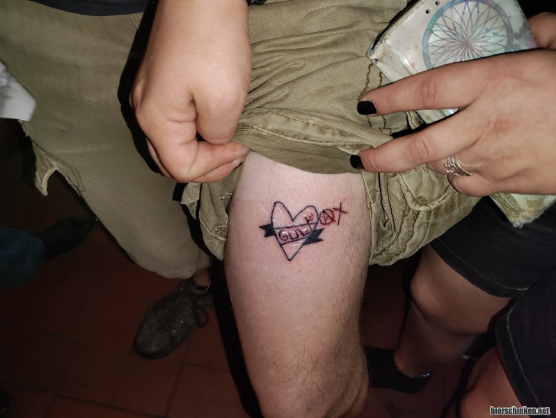 Es gab auch "Ersttattoowierungen" wie dieses hier. Kostenpunkt 2 bis 25€, per Losverfahren ermittelt und der Glückliche durfte dann sich ein Motiv erdrehen. Richtige Nieten, die man anschließend überdecken müsste, waren immerhin nicht dabei.