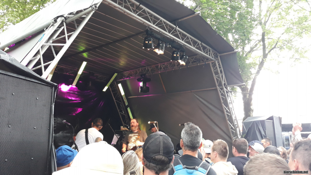 Übrigens auch interessant, dass fast durchgehend bei jeder Band irgendwelche Kinder am Bühnenrand tanzen oder Crowdsurfen. Das ist zugegebenermaßen schon ganz witzig und man freut sich für die Familien, die wohl alle hier einen großen Spaß haben. Andererseits merkt man dann beim zehnten Mal in Folge irgendwann, dass der Rest des Publikums immer weniger Bock hat, die Kids durch den Park zu tragen.