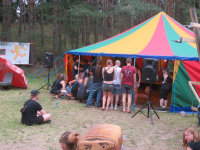Für die letzten paar Lieder wächst die Band auf 4 Personen an und es gibt sogar ne Violine zu hören. Und einen Coversong: "Drei rote Pfiffe" von "Schmetterlinge" und ich glaube, ich bin die einzige Person im Zelt, die zuvor noch nie von diesem Lied und dieser Band gehört hat.