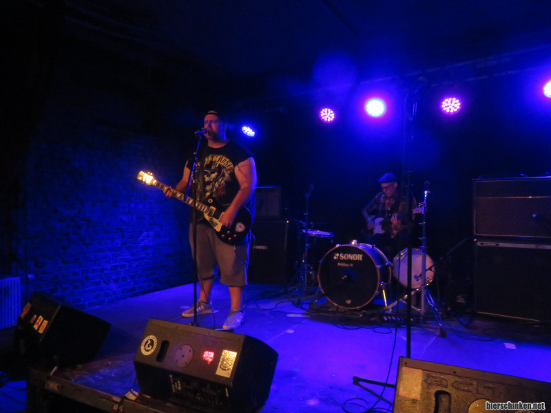 Fö: Anschließend geht es im Raum weiter mit COCKTAILBAR STAMMHEIM! Auch hier wieder: Angenehm gefüllt. Sänger Guns'n'Rosi fragt auch vorsichtig nach, wie viele Mülheim-Asozial-Fans noch hier sind. Der Anfang vieler frecher Spitzen gegen das Publikum, gegen sich und die eigene Band und natürlich den Rock'n'Roll-Lifestyle!