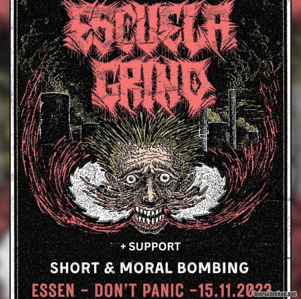 Trotz Bahnchaos (Baustelle und Streik) finde ich mich pünktlich zum Einlass im PanicRoom ein. SHORT. sind zwar mit dem Bulli angereist, aber auch nicht vor mir da. Relativ langsam füllt sich der Laden, während nebenan im Turock eine Mega-Schlange für die DEATHSTARS nach Einlass verlangt. Würde ich mir ja auch angucken, aber man kann halt nicht alles haben...außerdem fand Matt die Vorbands eher nicht so gut, also bin ich hier schon richtig. SHORT. würden mir auch gefallen, wenn die mich nicht am Bahnstreik vorbei mit nach Hause nähmen. GRVNTIG, die für die erkrankten MORAL BOMBING einspringen, lassen uns einfach an ihrer Probe teilhaben. So muss nach jedem Song kurz diskutiert werden, was als nächstes gespielt werden könnte. Das ist erstaunlich unterhaltsam. Bei ESCUELA GRIND brechen dann alle Dämme. Es gibt einen wilden Mosh-Pit inklusive Wall of Death und Circle-Pit. Auf engstem Raum wohlgemerkt. Mir persönlich fehlt etwas der Überraschungseffekt von meinem Grindcore-Abenteuer letztes Jahr in Bremen, aber trotzdem hält mich nix mehr und ich stürze mich ebenfalls ins Geschehen.