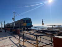 Bevor wir zum Boot kamen und die Schienen überqueren konnten, kam ein Zug lang gebrettert. Wie cool ist das denn, direkt am Ufer entlang?