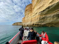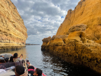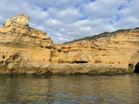 Die Steilküste der Algarve mit all ihren Steinformationen ist wirklich imposant und schön anzusehen! Wir fahren mit dem Schiff in ein paar Grotten rein und sind jedes Mal aufs Neue begeistert. Der Guide ist ein Scherzkeks und stellt sich als Künstler vor, der die Felsformationen zu Tierplastiken modelliert haben will. Hier sehen wir einen Elefanten.