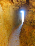 Während der Bootsfahrt werden wir auch erst aufmerksam gemacht auf die Felsformationen von Algar Seco, also steuern wir das anschließend noch kurz mit dem Auto an. Das ist ein Gebiet an der Küste, das man prima zu Fuß begehen kann. In den Sandstein geschlagene Tunnel und Treppchen bieten immer neue Wege, die eindrucksvolle Natur zu beobachten. Auch wenn hier und da natürlich Trittsicherheit vonnöten ist.