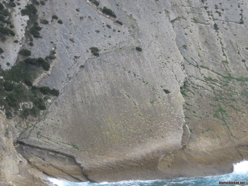 Fö: Und, erkennt ihr's? Direkt neben dem Kloster gibt es original erhaltene versteinerte Dinosaurierspuren! Die Dinos sind damals übrigens keine Wände hochgelaufen, die Steinplatten sind nur einfach ins Meer gekippt, Kontinentalverschiebung und anderen Ereignissen zum Dank. Dafür kommt man dort leider nicht zu Fuß hin, kann aber vom gegenüberliegenden Ufer der Bucht rüberschauen und entschlüsseln, welche der moosbewachsenen Einkerbungen von Dinosauriern stammen.