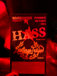 Benni ist groß - in cm und seine Persönlichkeit. Ich mag den sehr gerne und deswegen bin ich ja hier. Naja, der Sänger von LT macht schon was her. Ein kopftätowierter Glatzkopf in der ersten Reihe wippt zumindest anerkennend. Hier mein letztes Bandbild. Ansagepause oder so. Leistungsträger in Bewegung. Aber hier ist auch Basser Benni, der u.a. auch bei Moloch spielt (Benjamin Kasso! Wir wollen ja beim Bandkonzept bleiben...), in Hemd und Krawatte mit drauf. Das Bandkonzept, sei hier nochmal hervorgehoben, ist im Gesamtbild übrigens groß. Hört euch mal die Platte mit den Texten an! Deutschpunkgeballer mit Working-Class-Hero-/Kaptialismuskritik-Persiflage. Dann checkste auch die Ansagen. Ob das beim überalterten HASS-Publikum so ganz gezündet hat, wage ich zu bezweifeln. Aber mensch applaudiert ordentlich und fordert am Ende sogar Zugaben!