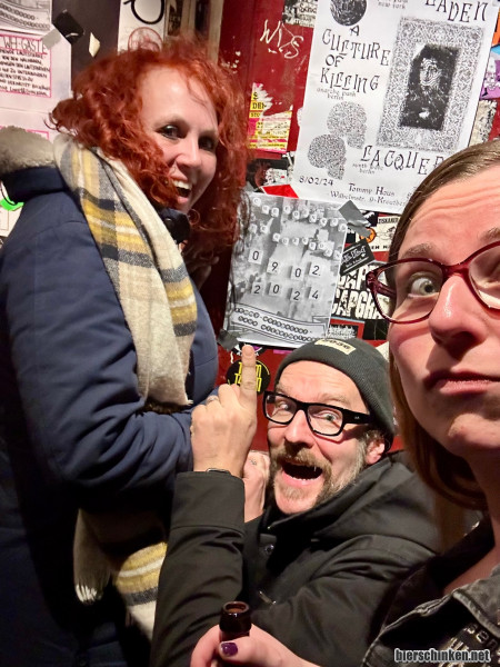 Paula: Wo wir doch den ganzen Bericht über so schön genamedroppt haben und ich kein Bild von HASS gemacht hab, hier eben dieses. Beim Weg nach draußen fällt uns dieses schöne, winzigkleine Plakat für unser nächstes Konzert auf, das wir natürlich direkt noch fotografieren müssen. Außer dem Datum erkennt man hier leider nichts und unser Schlagzeuger war da schon verschwunden. Aber in der Linie war noch gut was los. DTH kamen - als ich da war - zum Glück nur einmal... Hier lerne ich auch endlich Cesar, den spanischen Cousin von kraVals Sängers kennen, bekomme brauchbare Reisetipps (Alicante!), verpasse bei trinkbarem Bier irgendwann aber den Absprung und lande dann wohl erst so gegen Sechs im Bett. Es gibt schlimmere Abende und Leistungsträger gucke ich mir immer wieder gerne an.