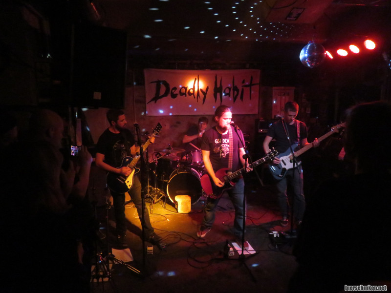 Fö: Deadly Habit servieren so dieses Skatepunk ("Wir haben schon mal ein Skateboard in der Hand gehalten, also sind wir Skater") der eher härteren Schiene. Richtig amtliche Bühnenpräsenz finde ich, die haben auf jeden Fall häufiger als 2 Mal geprobt und stehen da wie ne 1. Stark!
