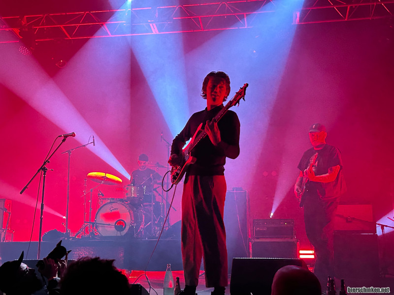 Den Anfang machen TREEBOY & ARC aus Leeds. Sie spielen Post-Punk und starten vor etwa 150 Leuten. Nach ein paar Songs füllt es sich immerhin. Viel hängen bleibt bei mir nicht, nur die schnelleren Parts und Nummern taugen mir, während ich mit dem lahmen Zeugs einfach nix anfangen kann. Sound sowie Licht sind fantastisch. Wo bin ich eigentlich hier gelandet? Ein echtes Schlaraffenland!