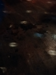 Sind das da Blutflecken? Wir sind augenscheinlich einem fiesen Verbrechen auf der Spur. Ganz klar: Es war Mord! Tatort: Schokoladen. Eine wichtige Frage lautet zudem: Stammen diese Flecken vom Vorabend? Da war hier laut Programmheft eine Singer-Songwriterin. Solche Musik zieht ganz klar Mörder*innen an. Kommt der/die Täter*in zurück an den Ort des Verbrechens? Und werden wir sie/ihn erkennen?