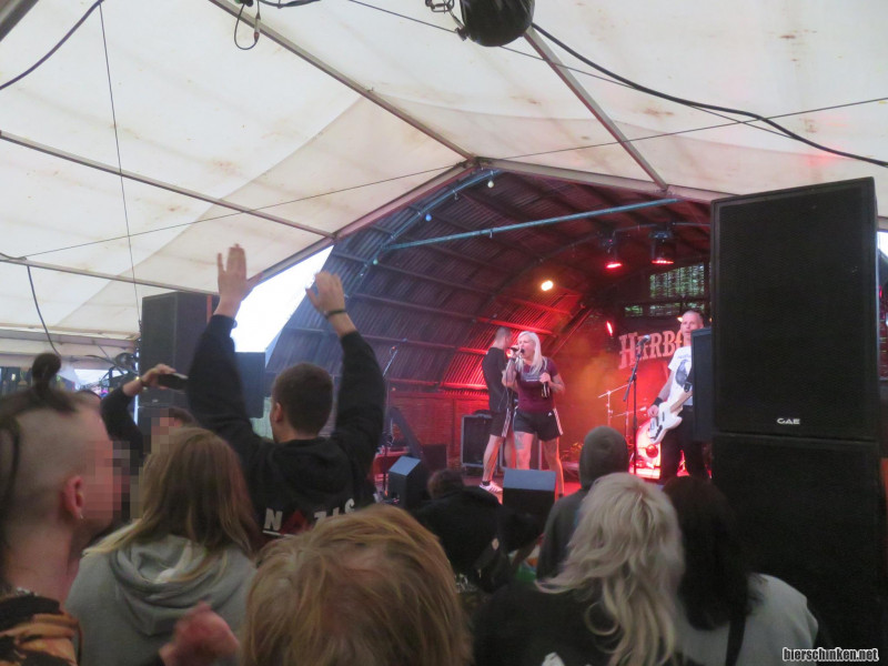 Fö: Anschließend kurz dinnieren. Es gibt Pommes von der Grillbude oder wie immer vorzügliches Fresschen von Kitchen Riot. Senfvleisch-Kartoffelgedöns könnte etwas mehr Würze vertragen, war aber sonst super. Von HARBOUR REBELS kriege ich dann auch nur das Ende des Sets mit, schaue aber natürlich trotzdem kurz vorbei.