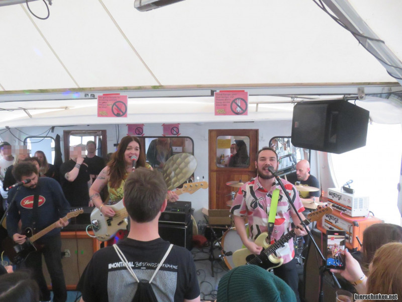 Fö: Hätte vielleicht besser gezündet, wenn man auch in der ersten Hälfte des Sets die Gitarren gehört hätte. Oder wenn das mittlere Mikro nicht ausgefallen wäre. An der Stelle fand ich es wirklich sehr unpassend, dass das Mischpult seitlich der Bühne steht und der Tonmensch so vermutlich gar nicht mitbekommt, wenn vor der Bühne was am Sound nicht stimmt. Irgendwie ärgerlich. Andererseits hätte er ja auch reagieren können, als ihm das zugerufen wurde.