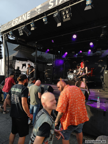 alexanderdavide: Wir kommen zu dem Act, auf den ich mich heute am meisten freue. N.T.Ä. aus dem Saarland gibt melodischen Streetpunk zum Besten. Ich bin großer Fan der energischen Stimme und des stürmischen Soundgewands, das von melodiösen Linien durchzogen ist. Die Inhalte sind bedingungslos politisch und werden klar und deutlich, trotzdem appetitlich serviert. Zum Song "Scream" weht passend die FCK AFD Fahne, was sich hoffentlich einige bei den anstehenden Wahlen zu Herzen nehmen. Interessant ist übrigens, wie N.T.Ä. das ein oder andere deutsche Wort in die eigentlich englischen Texte mischt. Man kennt das von Pascow, wo es sprachlich nur anders herum ist. Mir gefällts. Nach all dem Lob finde ich nur die Live Show etwas statisch. Sie spiegelt für mich leider nicht dasselbe Feuer der Musik und Texte wieder.