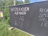 Nach einem Interlude heißt man jetzt ähnlich stumpf SACHSEN DRECK und poltert weiter mit harten Politpunk Richtung "Endstation Chaos". So heißt beispielsweise ein Song "A.C.A.T." und als Cover ist mir "Nazis haben eine Nummer" von Kaltwetterfront im Gedächtnis geblieben. Auf jeden Fall hatte die Band eine hohe Quote an Rauchentwicklung vor der Bühne. Hust. Ein paar Tage später gab es eine Bierphilosophie, ob denn ein Name wie "Drecks Achsen" leichter konsumierbar wäre.