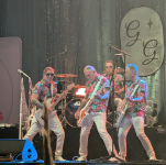 Spannend wie die mit Mitte 60 immer noch so eine Clownsshow durchziehen. Dass sich der Sänger oben entblößt, hätte nicht sein müssen. Aber die Triple-Neck und die ganze Zeit das puppenartige Synchronhüpfen war schon gut unterhaltsam. Zur Belohnung gab's am Ende noch eine Hand voll dieser markanten Sonnenbrillen vom Bühnenbanner fürs Publikum.