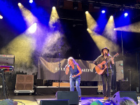 Das Openair Gelände ist hübsch gemacht, geräumig, super ausgeleuchtet und die Getränkepreise sind soweit ganz fair. Den Opener machen heute PAULINE & ALEKSI, ein deutsch/finnisches Singer/Songwriter-Duo. Die Musik plätschert so vor sich und dem noch wenigen Publikum gefällt‘s. Pauline singt ganz fantastisch, Aleksi spielt dabei auf der Gitarre und manchmal singt er auch mit. Nach 5 Songs oder so schalte ich aber auf Durchzug - bin offenbar noch zu müde.