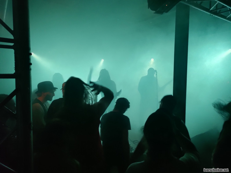 VAZIO aus São Paulo schließen bei merklich weniger Publikum ab. Ein-zwei Bands zuvor war auch mal eine größere Gruppe mit "Wir kommen hier sonst nicht mehr weg" verschwunden. Wie man vielleicht am Foto erkennen kann, hören wir Black Metal.