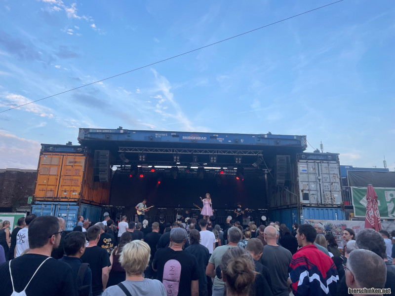 Wie man sieht, spielt das Wetter hervorragend mit und LAWN CHAIR eröffnen unter blauem Himmel und sehen dann die Sonne unter gehen. Allerdings nicht musikalisch. Denn was die Band aus Köln da abliefert ist absolut super.