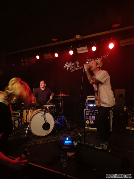 EATEN BY SNAKES machen den Abschluss. Das Duo aus Bielefeld spielt eine Post-Punk Synth Mischung, in die ich mich wunderbar hineinfühlen kann. Üblicherweise wünsche ich mir, dass am Ende nochmal die Fetzen fliegen, aber für den heutigen Tag ist es genau das Richtige. Zu später Stunde werden uns auch gar keine Weisheiten mehr zugemutet. Stattdessen nutzt David die Zeit zum Bier trinken.