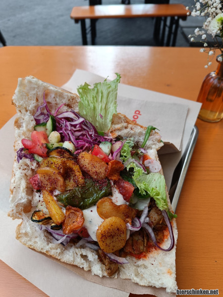 Damit sich das Spätkommen überhaupt lohnt, esse ich nach dem Einchecken im Hostel veganen Döner bei doen doen. Der schmeckt lecker, doch wer hat sich das überlegt, den so aufzuschneiden, dass man ihn kaum essen kann?