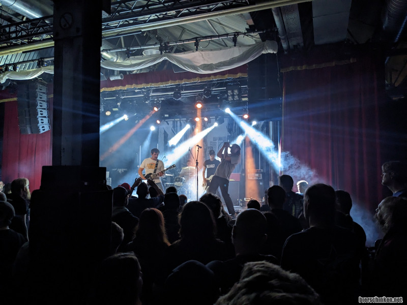 Los geht's mit SYFF. Schneller aggressiver Hardcore-Punk, gefällt mir für den Erstkontakt relativ gut. Leider nur mittelmäßig abgemischt, so dass ich überwiegend Schlagzeug gehört habe.