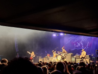 Erste Band ist JESUS PIECE. Wir sind viel zu sehr damit beschäftigt, uns zwischen die Menschenmassen zu schieben, um die Stationen Klo, Bar und Garderobe zu schaffen, als uns mit der Musik zu beschäftigen. Es wird auf jeden Fall fleißig gegrunzt, also auf der Bühne. Was bleibt ist: "No shirt, no merch!"