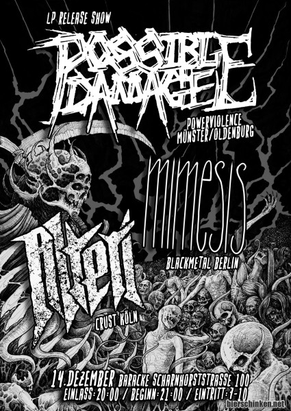 Heute sind schwere Entscheidungen zu treffen...dieses wunderbare Konzert steht zur Auswahl, wurde aber inzwischen in die B-Side verlegt. Das hält mich dann doch davon ab, dorthin zu fahren. Hätte ich gewusst, dass MIMESIS ausfallen und durch die großartigen ATOMKRIEG ersetzt wurden, wäre meine Entscheidung, stattdessen nach Dülmen zu fahren, wahrscheinlich noch mal umgeworfen worden...