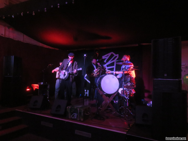 Fö: Da wir etwa eine Stunde später als geplant ankommen, hat die Band leider schon begonnen. Welch Schande! Wir hatten ja gehofft, nur sowas wie die Vorband zu verpassen, aber offensichtlich gab es eine solche gar nicht. Nun denn, werden wir also direkt reinkatapultiert in die Hanba!-Welt.