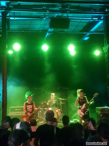 So oldschool finde ich es vom Sound gar nicht, aber musikalisch ist es etwas gleichförmig und erwartbar. Abwechslung bringt die koreanische Sprache in einigen Songs. RUMKICKS singen vom Moskitos killen und Bier trinken, aber verpacken auch die notwendige Ansage an Männer, mal die Fresse zu halten, in ihre Songs. Außerdem sind sie trotz oder vielleicht auch wegen der Publikumsbeschimpfung sehr sympathisch. Eine Person in meiner Nähe jubelt frenetisch und freut sich über jeden Song, an den Rändern der Halle wird interessiert bis irritiert geguckt.