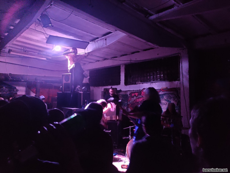 Ich positioniere mich direkt hinter dem Pfeiler mitten im Atelier um möglichst sicher rumzustehen. Einmal krebst der Sänger mit seinem Arsch vor meinem Gesicht dann an eben jenem Pfeiler hoch. Yeah. Beim Publikum definitiv Tagessieger.