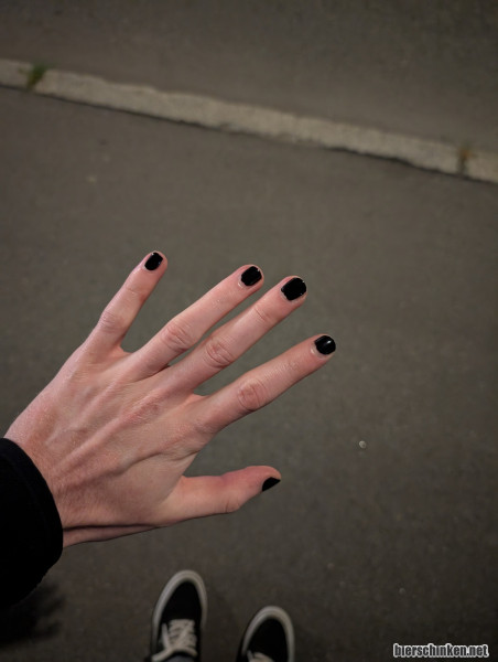 gegen 1 trete ich ab, um einigermaßen fit für morgen zu sein. Der Fußweg zurück in die Stadt ist lang und langweilig. Kaum zu glauben, es geht 45 Minuten ausschließlich geradeaus. Die einzige Unterhaltung ist der ungewohnte Anblick meiner Fingernägel, die ich auf der Bierbank für Spende an Krebshilfe lackiert bekommen habe. Gute Nacht.