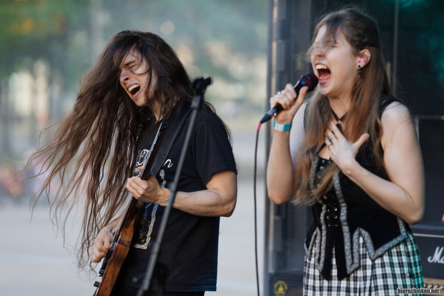Dr. Mabuse: Die Varianz in der Stimme der Sängerin ist auf jeden Fall gewaltig von düsterem Hass bis zu klarer Poesie ist alles vorhanden. Soweit ich gelesen habe sind hier die eigentlichen Masterminds hinter Urisk zu sehen (Bene und Marleen), die aber live nun von drei weiteren begabten Musikern unterstützt werden. Was ich besonders mag, ist, das vieles nach 1993 klingt und damit einfach sehr roh und brutal. Der Gesang ist anders, aber ein bisschen bilde ich mir ein Emperor und Carpathian Forest als Einfluss wahrzunehmen. Vielleicht auch ein wenig Wolves in the Throne Room. Aber ich habe zum Glück überhaupt keine Ahnung von Musik! Urisk können das was sie machen sehr sehr gut und beim Publikum kommt es ausgezeichnet an. Ich erwische mich dabei, wie ich mir wünsche, dass mehr Leute hier auftauchen, die vielleicht ein anderes Genre erwartet hätten. Allerdings kann man mit Metal in 2025 auch nicht mehr wirklich provozieren.