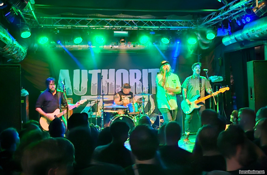 AUTHORITY ZERO schaue ich mir immer wieder gerne an, dennoch habe ich heute ein wenig Probleme in den Auftritt reinzufinden. Die ersten Songs sind tatsächlich so schnell und wirken minimal unkoordiniert, dass ich das Gefühl habe gleiches gilt für die Band. Außerdem klingt Jason DeVores Stimme heute zunächst ein bisschen angeknackst.