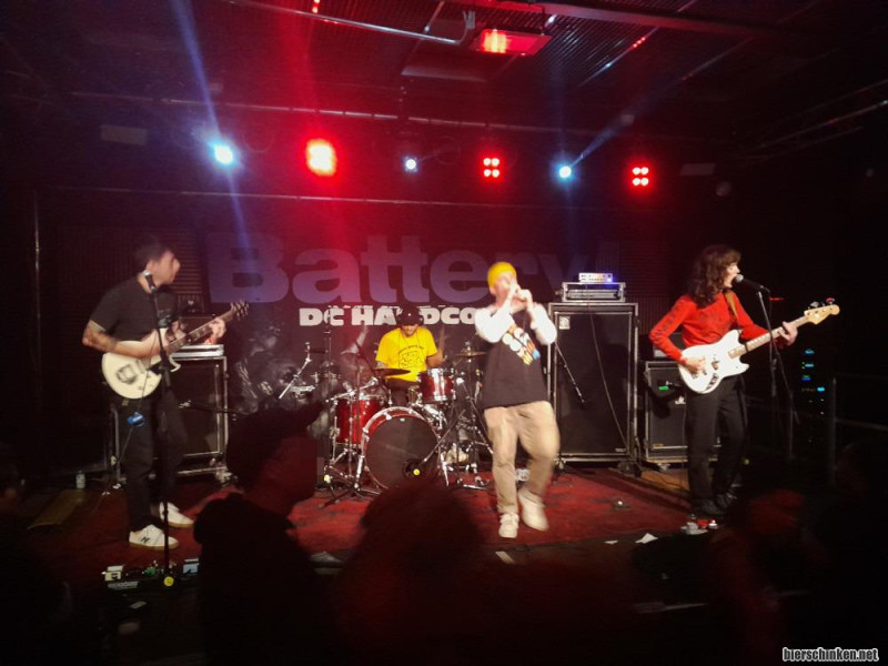 DOUBLE LIFE sind etwas zurückhaltend in der Performance, vom Sound her aber gar nicht. Tatsächlich hiebt der Drummer Sticks (nunja) und Snare (oha) durch, sodass BATTERY mit ihrer Snare aushelfen.