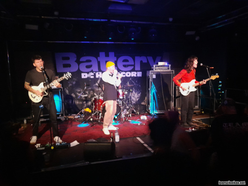 Ein paar nicht so zugängliche, ein paar gut schiebende Songs und einmal gibt es Gastgesang von einer Person namens Maria. Zwischen den Songs reden zwei im Publikum vor mir fortwährend über Muttermilch. Ich weiß nicht was der Auslöser ist, die Band hat aber glaube ich nicht darüber gesungen. Als die beiden grade über's Muttermilch probieren sprechen, steigt DOUBLE LIFEs Sänger in den nächsten Song ein. Das kommt irgendwie schräg, aber weiß er ja nicht, was hier besprochen wird.