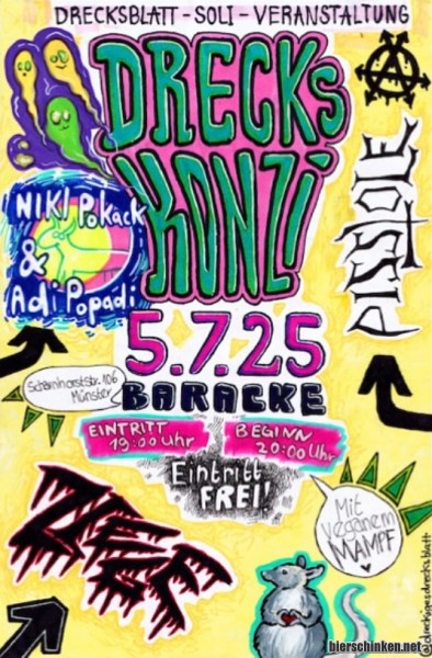 Das Drecksblatt entwickelt sich zum größten Bierschinken-Konkurrent*In. Jetzt gibt es also auch Konzerte. Drecksblatt eats Baracke oder so ähnlich.
