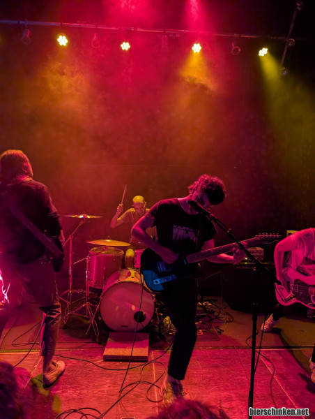 Als nächstes spielen IM WASSER. Der shoegazige Emo ist musikalisch wie inhaltlich ausdrucksstark und schafft eine gesetzte, aber intensive Atmosphäre. Die fast schon poetischen Texte stehen im Wechsel mit längeren rein-instrumentalen Abschnitten, die tiefgehende Räume erzeugen und bei der Band aus Essen voll ins Bild passen.