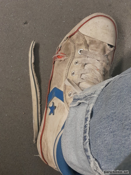 Nach dem Smartphone verlassen mich nun Teile des Schuhs. Aber jedes Konzert, bei dem eine Schusohle aufgibt, war ein gutes Konzert.
