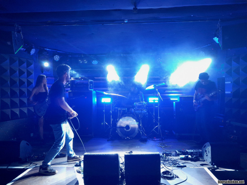 Die folgenden LÖRI sind deutlich düsterer. Zu Beginn klingt der Gesang, als schreie jemand leise aus den Lüftungsrohren in der Decke um Hilfe. Nachdem vor dem zweiten Song am Effektgerät gedreht wurde, war die Stimme präsent. Ob das so sollte, weiß ich nicht. Jetzt wird aber wohltuend böse geschrien. Die Bassistin spielt nicht wild, aber präsent gut gesetzt, der Drummer innovativ und heftig. Vom Gitarristen gibt es melodische Dissonanz dazu.