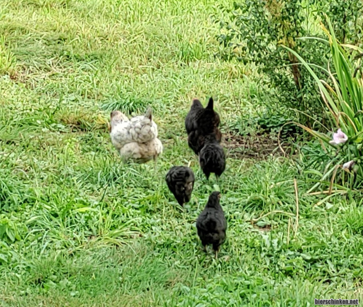Auf der Hinfahrt werde ich beglückt wie der Hühnernachwuchs noch vor Fressfeinden gesichert wird. Trotzdem kommen wir vor den eigentlich zeitiger geplanten Bands an.