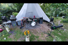 Wir können heute, genau wie eigentlich auch gestern schon, entspannt aufbauen, weil eigentlich nur wir hier auf bzw unter der Bühne/Zeltdach spielen.