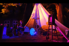 Wir spielen heute Freiluft, das Wetter spielt mit, einen mobilen Jacuzzi gibt es auch, sowie einen Pizzaofen draußen, Verpflegung jeglicher Couleur und reichlich Grünzeug.