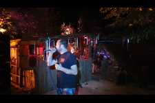 Solider zweiter Gig für uns. Während wir abbauen und unseren Kladderadatsch schonmal einladen, trällert ein Mädel vom Hof ein paar Lieder auf Zuruf mit grandios improvisierten Texten wie; "Du wirst heute sechzig...sechs mal die zehn, sechzig - sechs und eine Null" Das Land der dichten Denker!