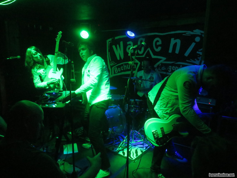 Das liegt zum einen an den durchgehend geilen Keyboard-Synthie-Sounds, zum anderen an einem unscheinbaren Theremin (nicht im Bild zu sehen), das der Bassist meistens einfach so nebenbei bedient. The Scaners passen auf jeden Fall noch auf die eine Hand, anhand der man abzählen kann, wie viele Bands ein Theremin so einsetzen können, dass es der Musik angemessen ist.