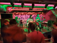Danach fahre ich zum Metaljam in die B-Side. Da ist richtig was los. Queere Kurzfilme, arabische Küche, Yogakurs und Metaljam finden gleichzeitig statt. RENEGADE scheinen eine Schülerband zu sein (?). Technisch können die wohl was. Aber das Songwriting ist grütze. Die Songs sind langweilig und eintönig. Einer wird angekündigt als: "Fängt langsam an, aber dann gehts ab." Ersteres stimmt, letzteres nicht. Als mein zweites Bier leer ist, mache ich mich vom Acker und werde im Gewitter klatschnass...was ein Tag!